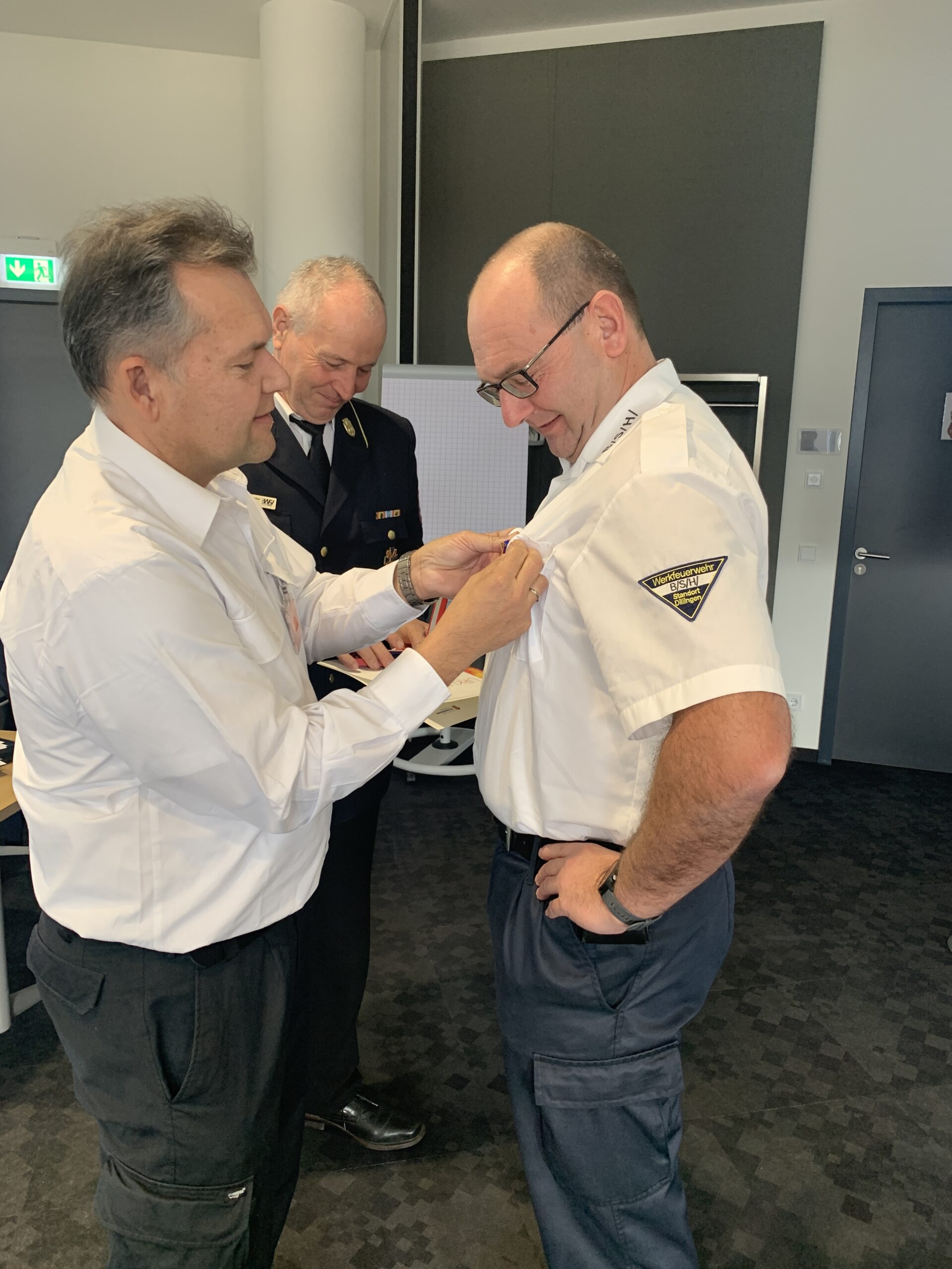 Erfreulicherweise durften auch Ehrungen durchgeführt werden. Es durfte das Deutsche Feuerwehr-Ehrenkreuz in Bronze an den sichtlich überraschten Leiter der Werkfeuerwehr B/S/H Dillingen und stv. Bezirkssprecher Olaf Dehlau überreicht werden. Lieber Olaf, wir gratulieren dir herzlich zu dieser Auszeichnung, du hast sie dir mehr als verdient. Vielen Dank für dein Engagement, wir hoffen, dass wir dich noch ganz lange im Verband haben.