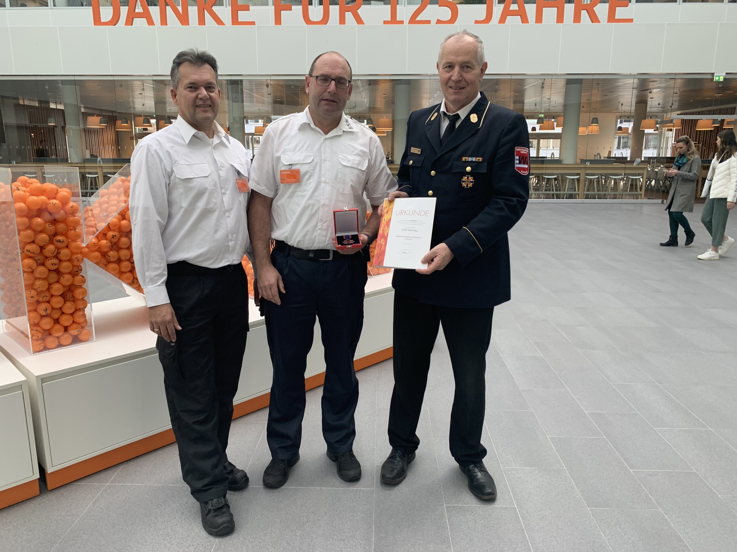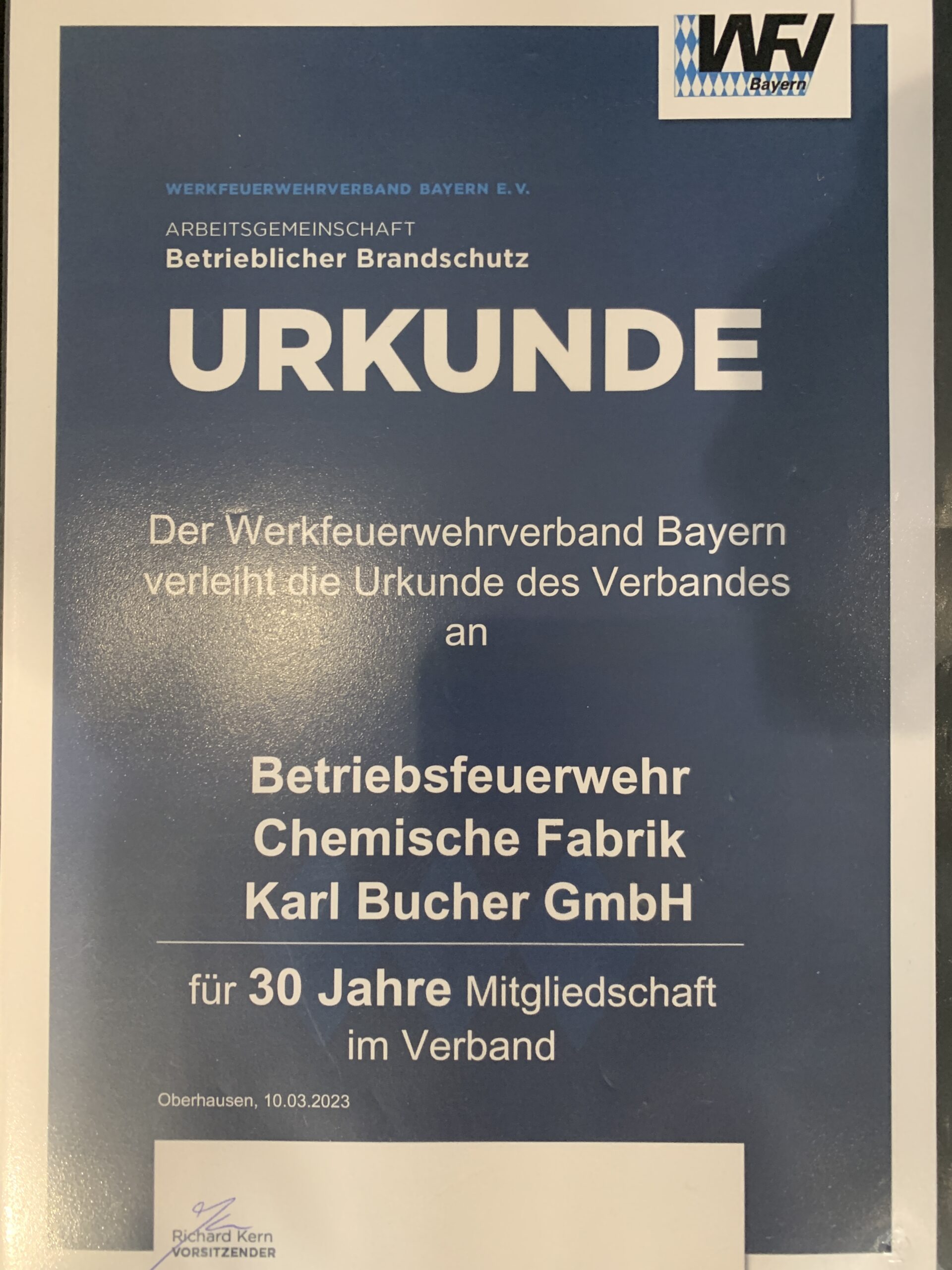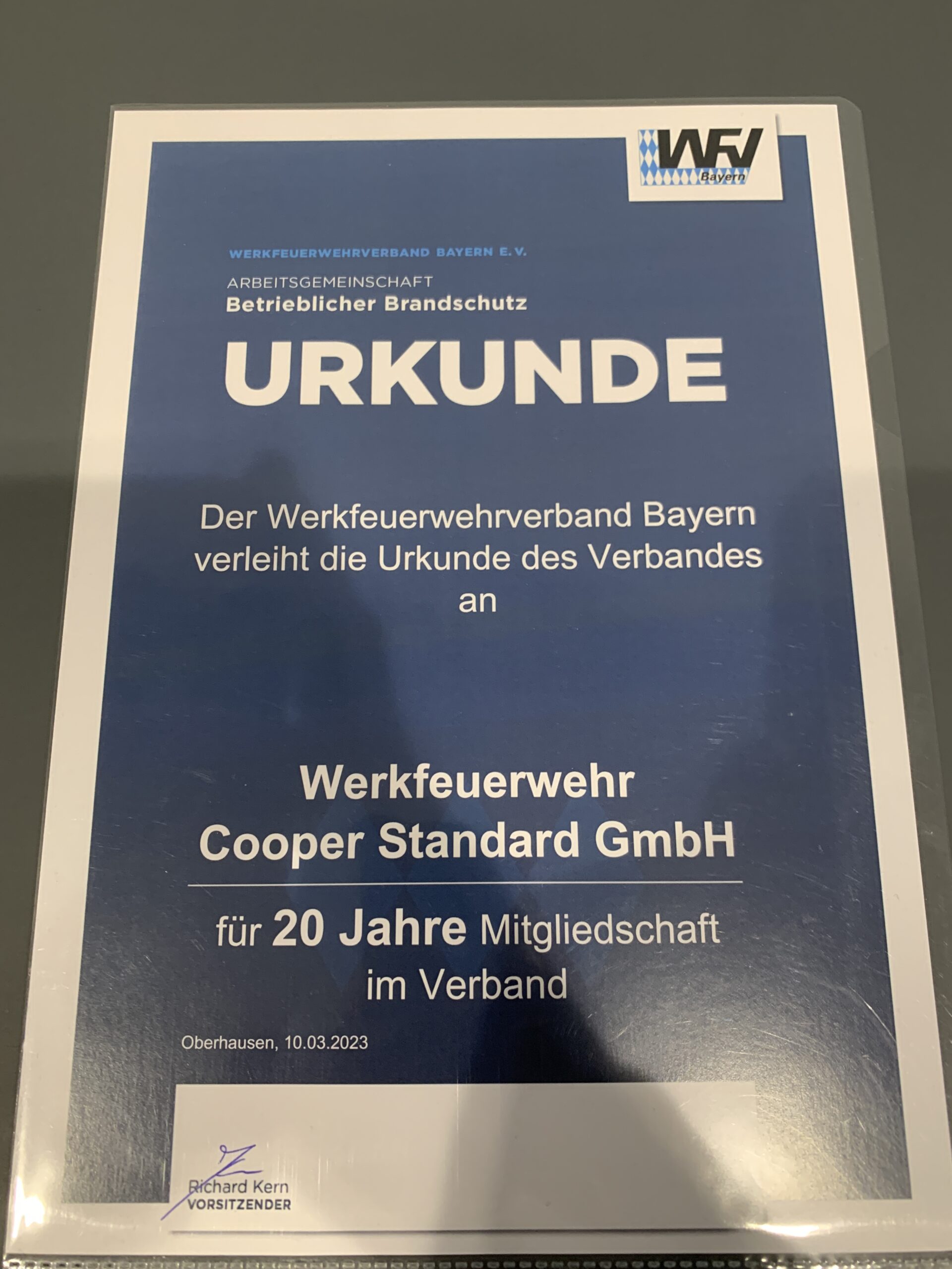 Für 30 Jahre Mitgliedschaft im Verband erhielten die Werkfeuerwehr AGCO Fendt Asbach-Bäumenheim und die Betriebsfeuerwehr Chemische Fabrik Karl Bucher GmbH Waldstetten eine Urkunde. Für 20 Jahre Mitgliedschaft konnte eine Auszeichnung an die Werkfeuerwehr Cooper Standard Lindau überreicht werden.